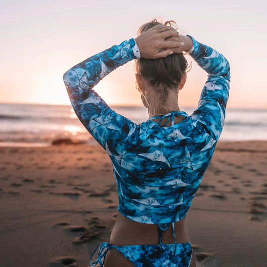 Starry Manta Ray Eco Cropped Rash Guard Solid