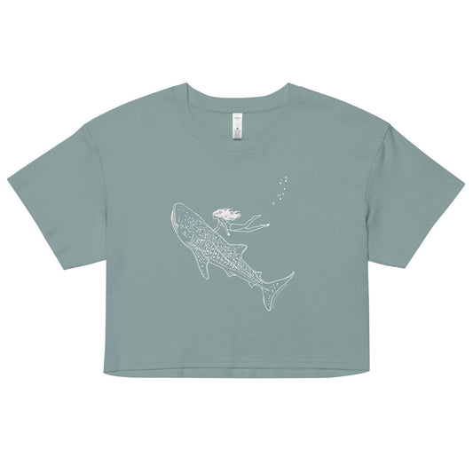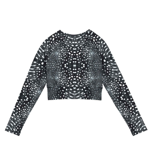 Whale Shark Mosaic B&W Eco Cropped Rash Guard Solid