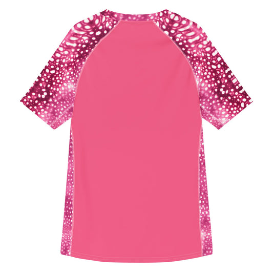 Whale Shark Mosaic Pink Women's Rash Guard Solid