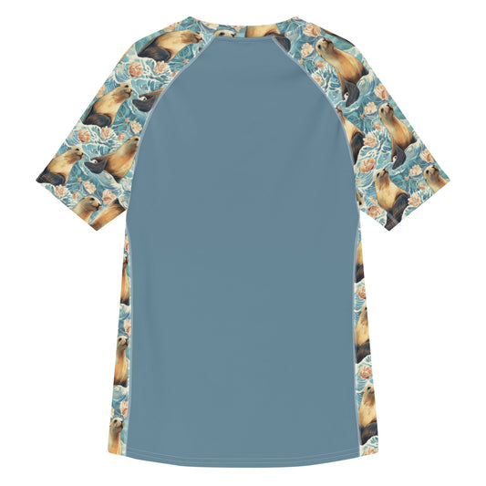 Seaside Sea Lion Men’s Short Sleeve Swim Shirt