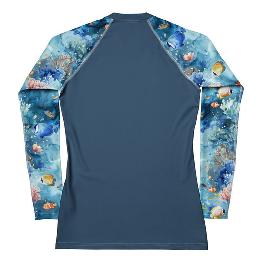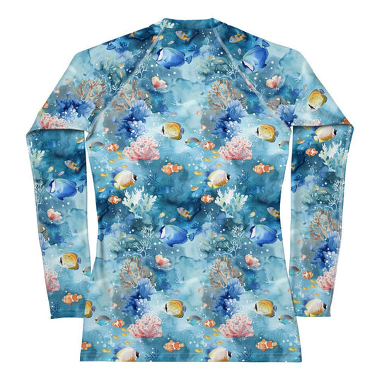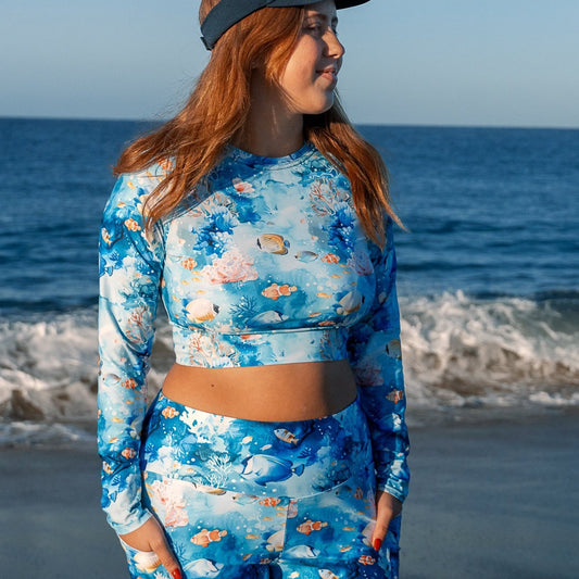 Tropical Reef Fish Eco Cropped Rash Guard Solid