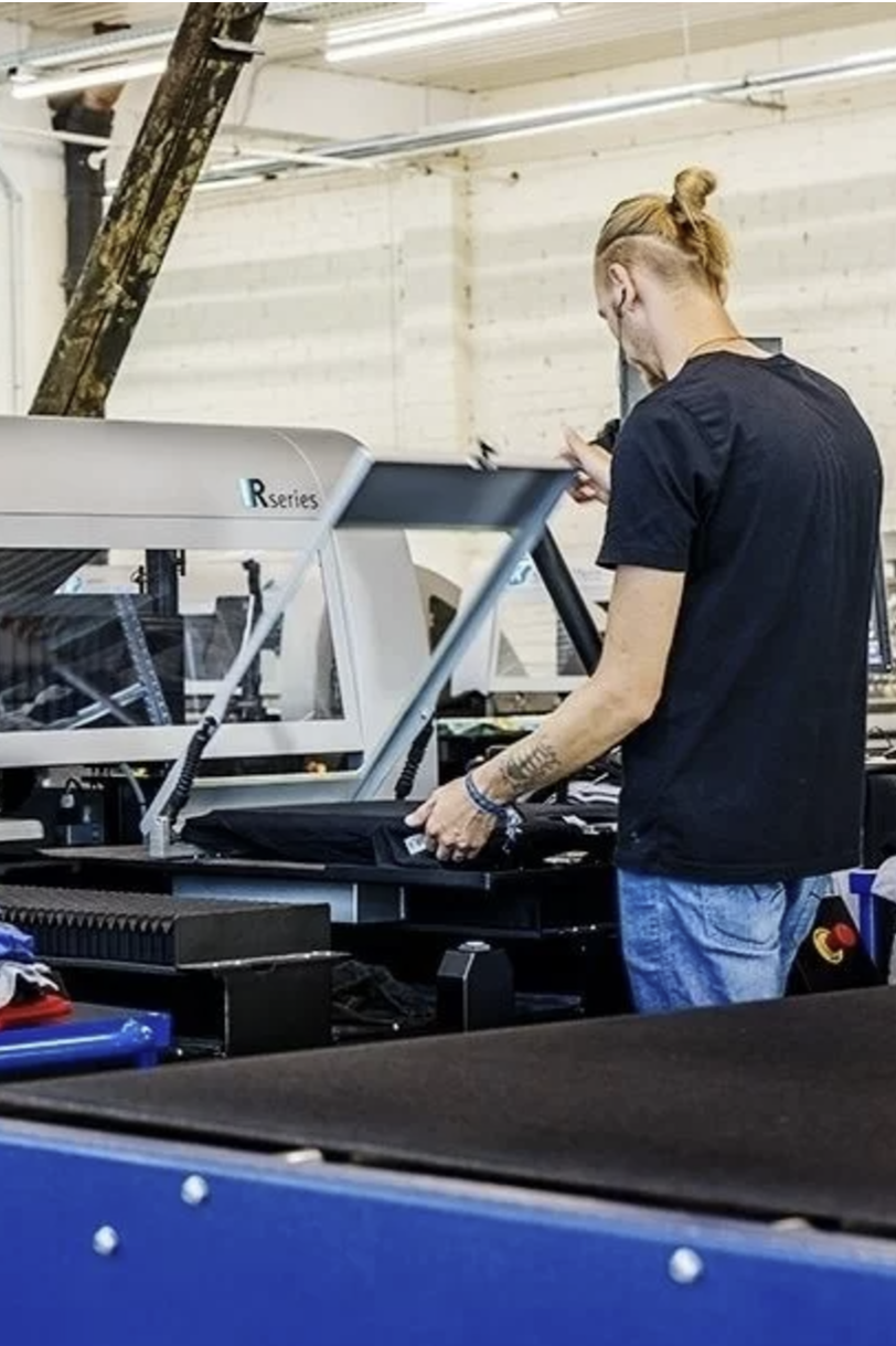 Our printing process minimizes waste and environmental impact. Using direct-to-garment (DTG) printing with Kornit printers, we create detailed designs while generating almost zero wastewater and consuming less energy than traditional methods.