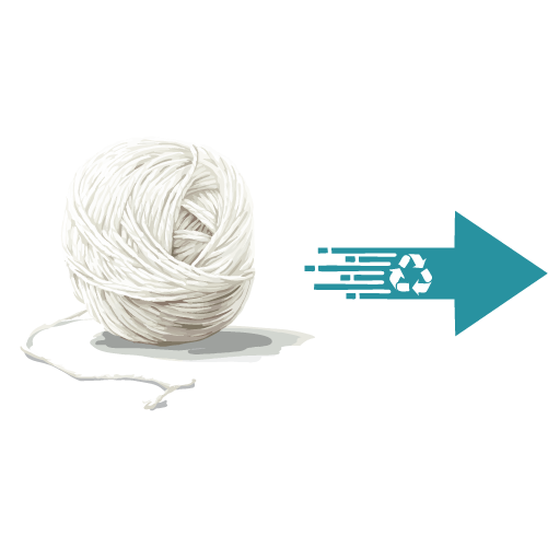 The plastic flakes are melted down and reformed into small pellets called “rPET pellets,” which serve as the raw material for creating new fabrics.