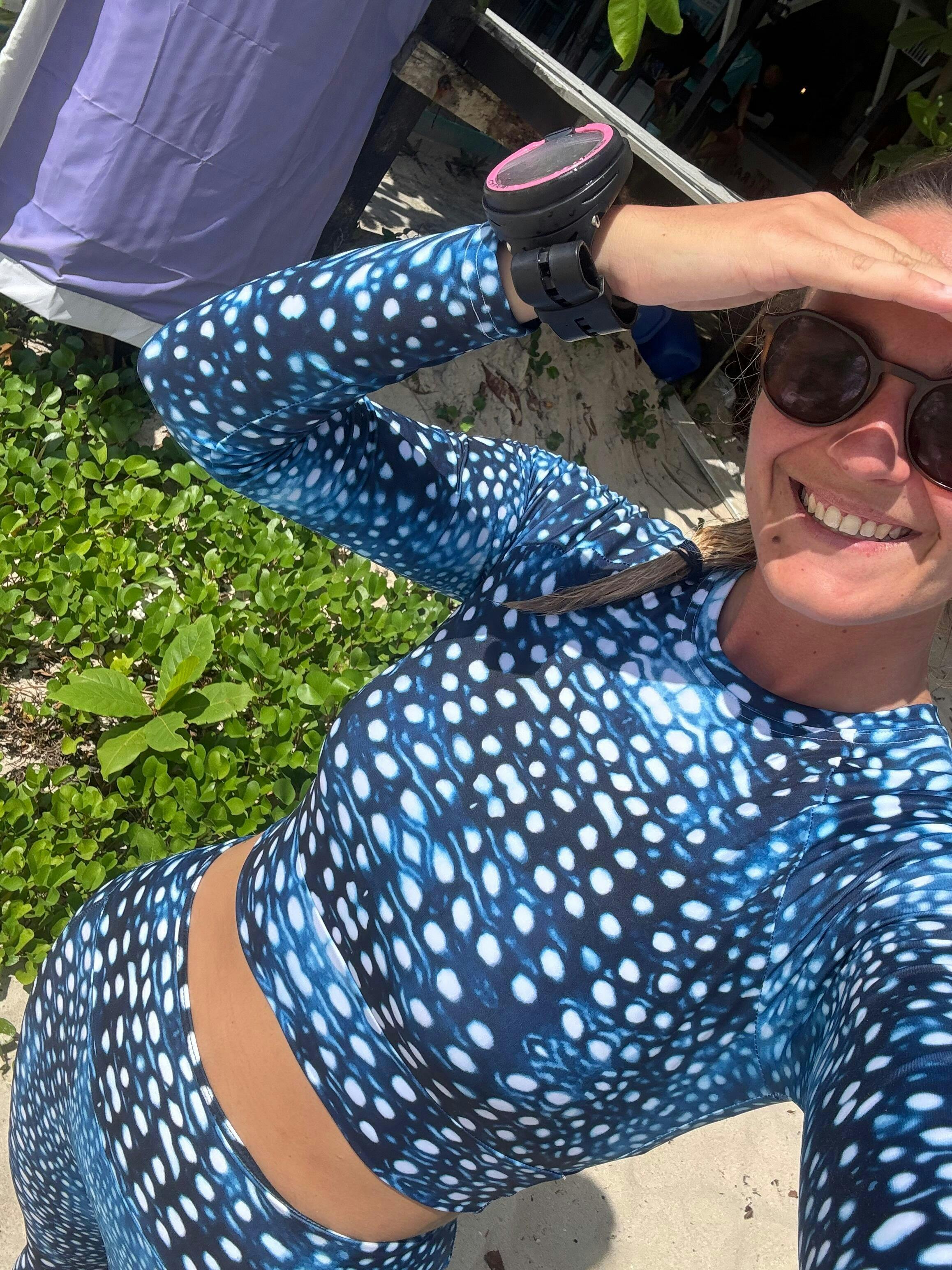 I already love wearing leggings, but these are great. I wore them to the pool and they were great. I didn’t have to pull at them or adjust them when I was wearing them and I felt protected. I didn’t miss having to put on sunblock. Definitely will be getting my more in different prints.