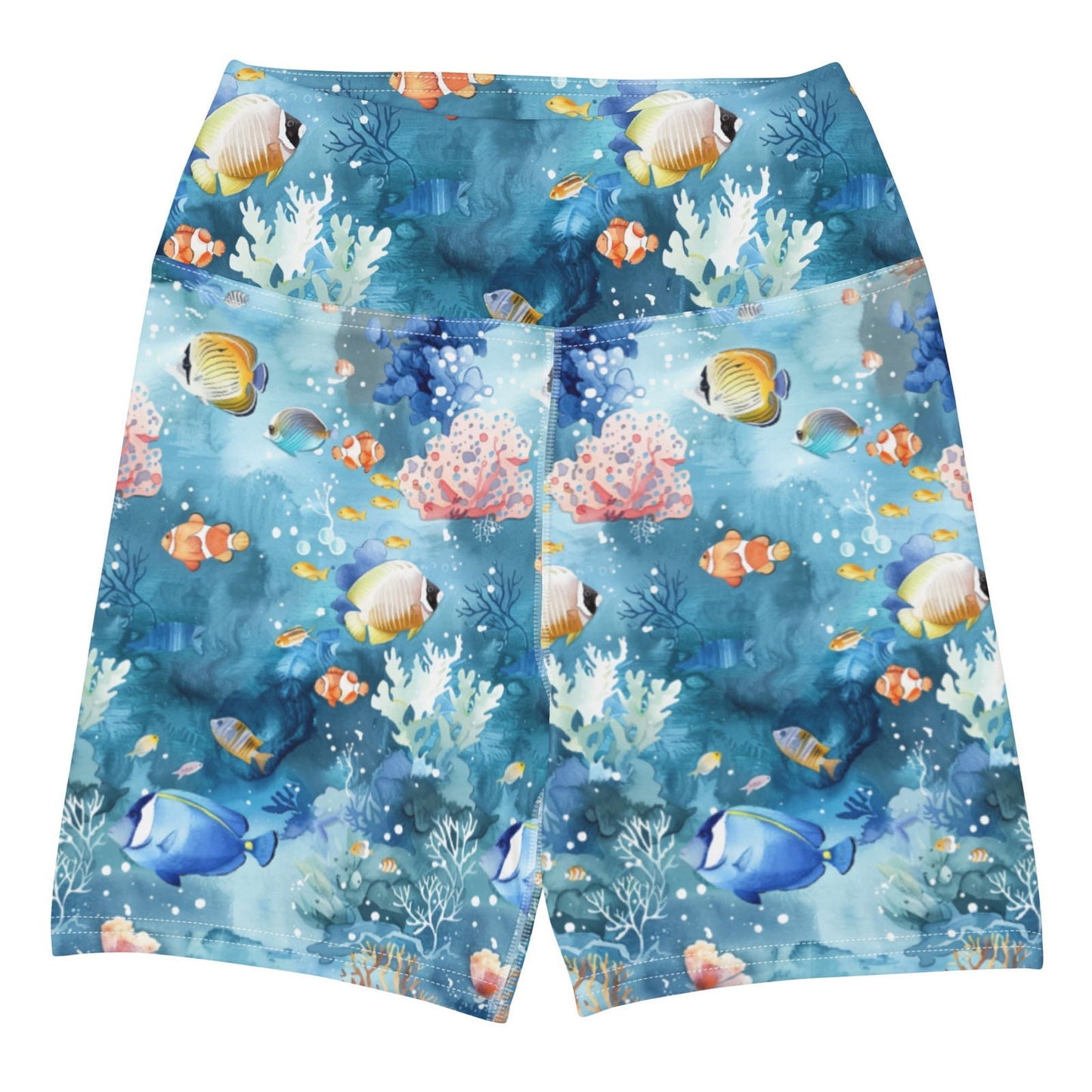 These versatile Tropical Reef Oasis 4" Inch Dive Shorts offer a body-flattering fit and unparalleled comfort, making them ideal for a wide range of activities. Whether you're hitting the waves for a surf session, diving into the depths while scuba diving, swimming, or just lounging on the beach, these shorts are designed to keep you feeling and looking great. Crafted with a high waistband and made from soft microfiber yarn, they provide a smooth, snug fit that moves with you. The vibrant tropical fish and coral reef pattern adds a touch of style, making these shorts a standout choice for any adventure.